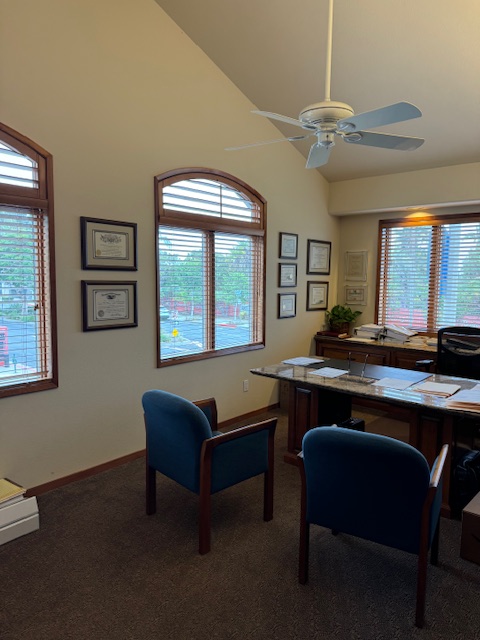 Office #2: Corner Office with East Facing (Sunrise) windows & Overlooking PCH/Sherman Gardens: 10′ x 19′ – 190 sq. ft.